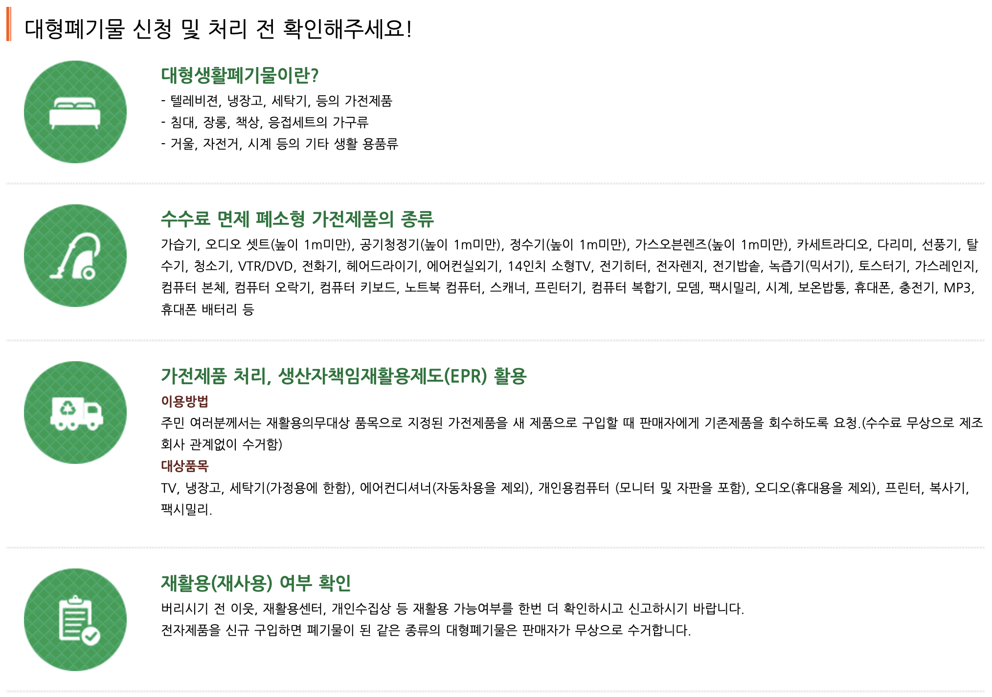 고양시 대형폐기물 수거 신청 전 확인사항