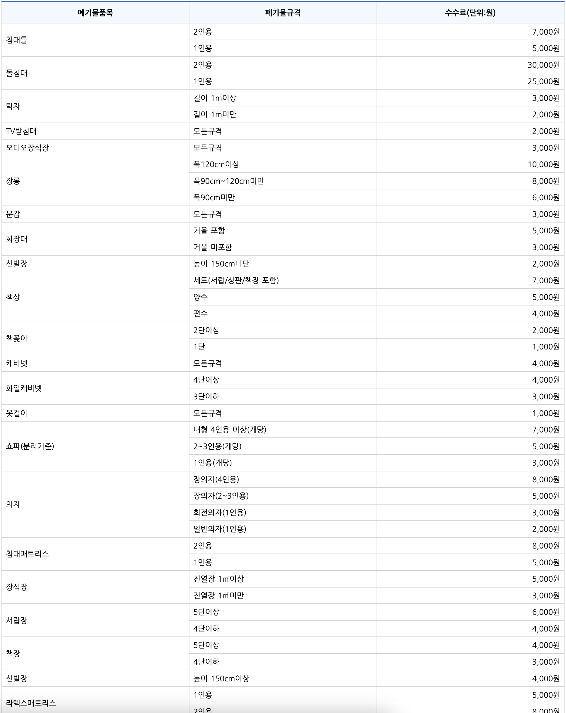 대형폐기물을 버리게 되었을 때, 방문 무상수거는 별도로 문의를 해야됩니다. (폐가전수거 예약센터 문의: 1599-0903)