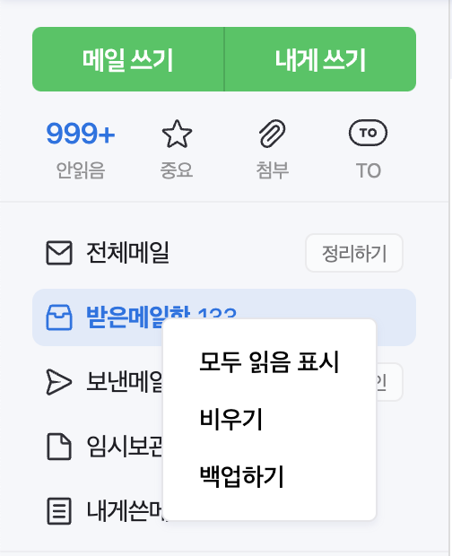 전체메일, 받은편지함, 보낸편지함 등등 있을거에요.