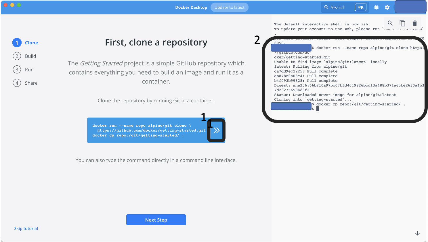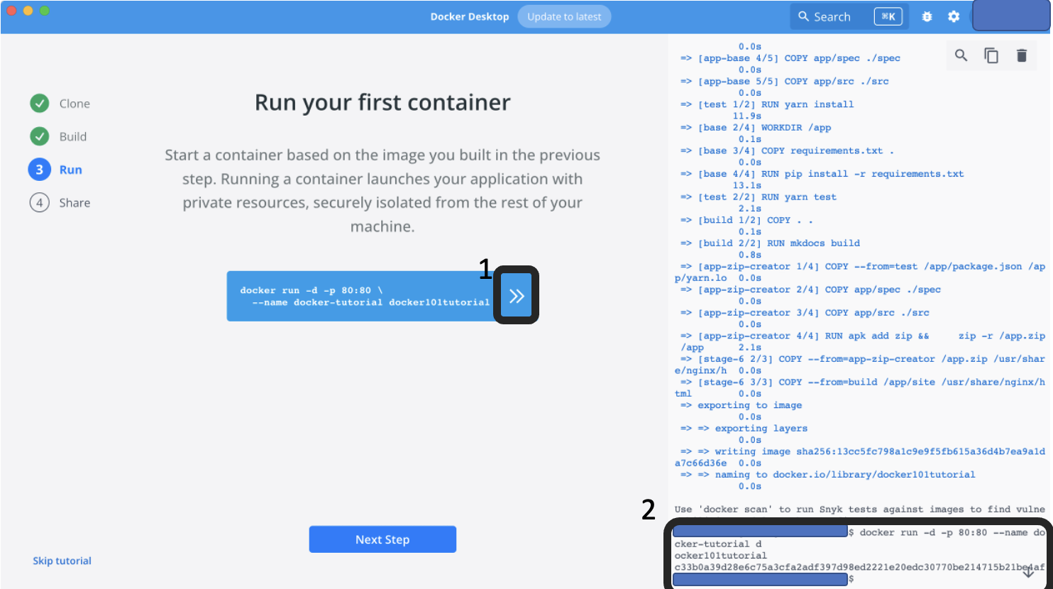실행이 완료되면 "Next Step" 버튼을 눌러주세요.