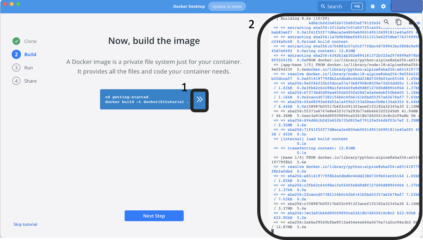 build를 진행해서 도커 이미지를 생성하는 것이죠.