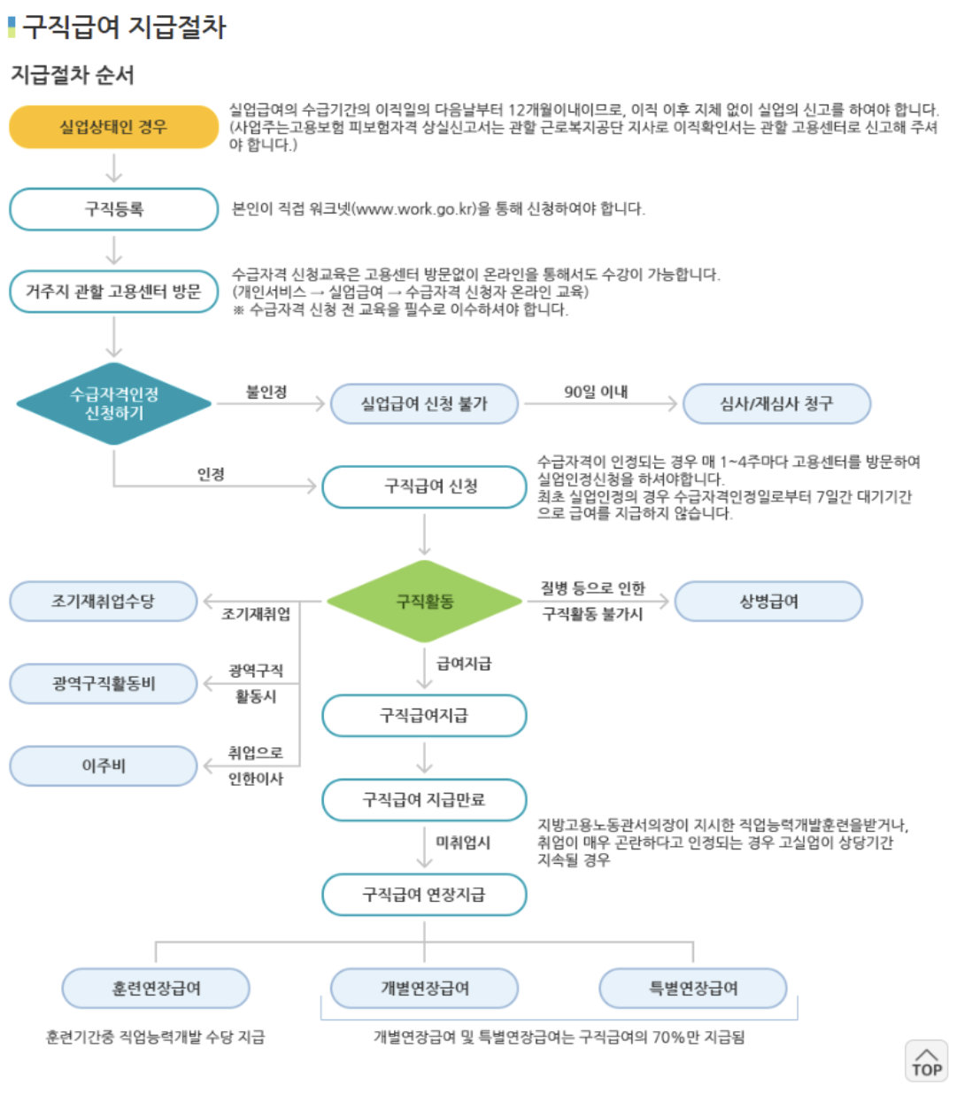 - 수급자격이 인정되면, 구직활동을 인증한 후 구직급여를 받을 수 있습니다. 자세한 사항은 아래 그림도 참고하시기 바랍니다.