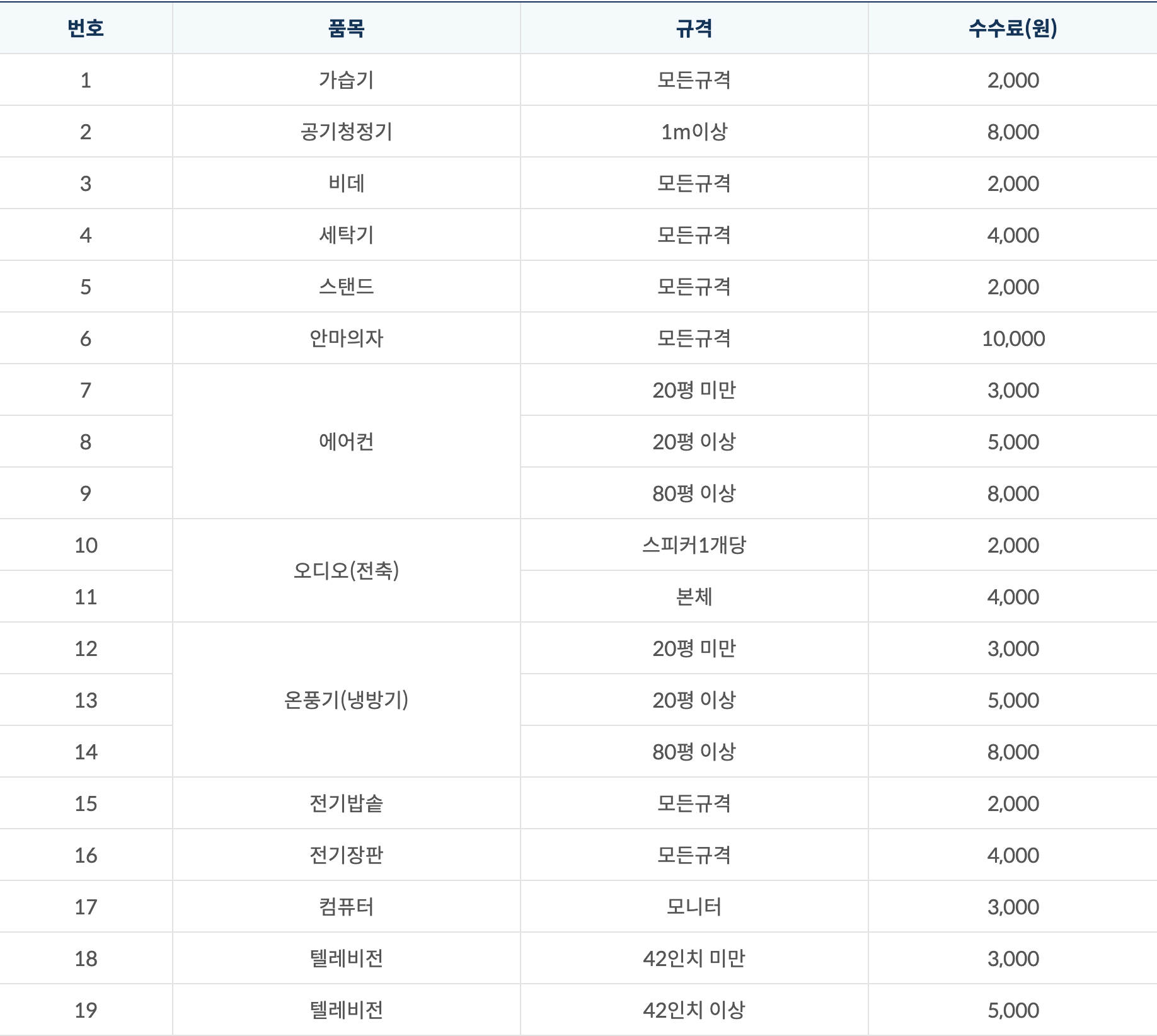 - 대형가전제품은 댁으로 방문해 무상으로 수거