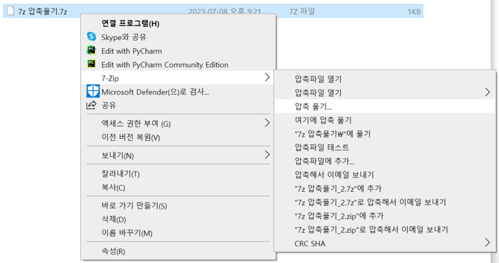 윈도우에서 7z 압축을 풀기위해서는