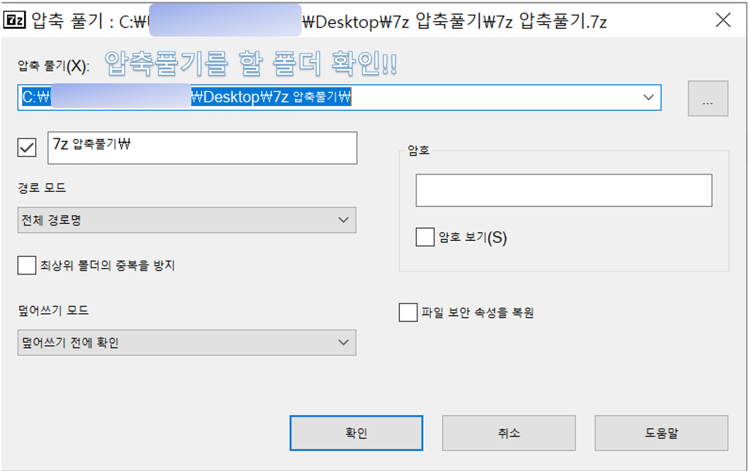 압축풀기전에 압축을 풀 폴더를 잘 확인하셔야 되요!