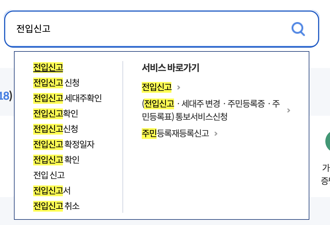 "전입신고"를 아래 이미지와 같이 검색을 하시면