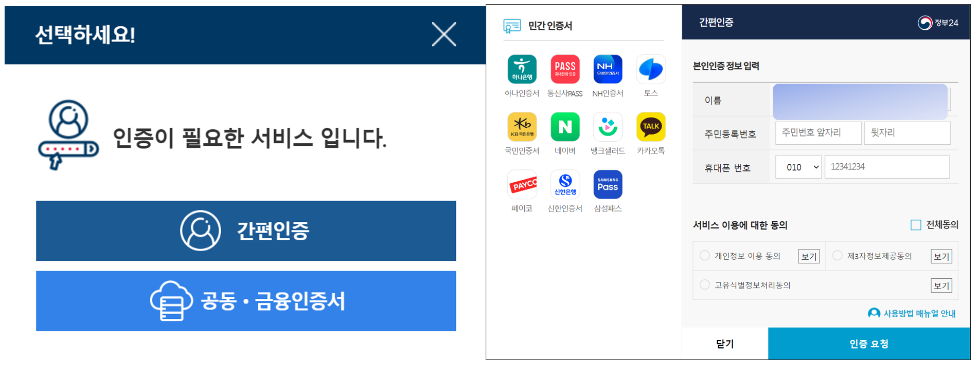 저는 아래화면처럼 간편본인인증을 진행했습니다.