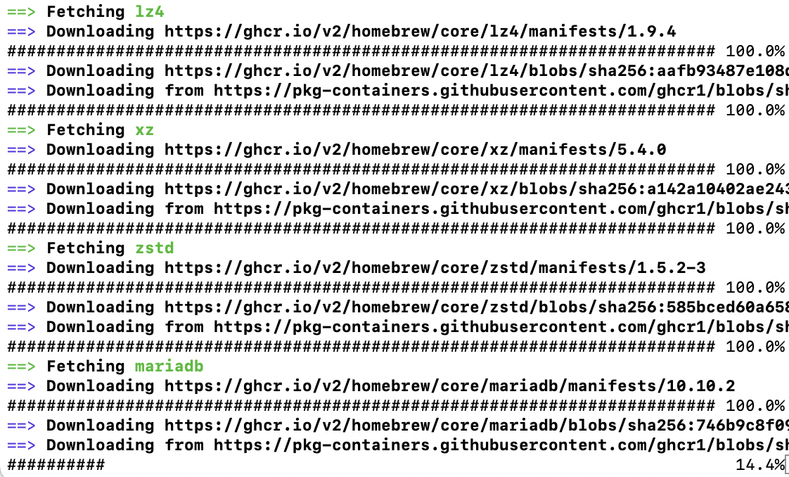Updating Homebrew... 하면서 mariadb가 설치 진행중입니다.