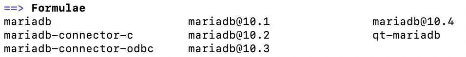 brew search mariadb의 결과는 아래 이미지처럼 나옵니다.