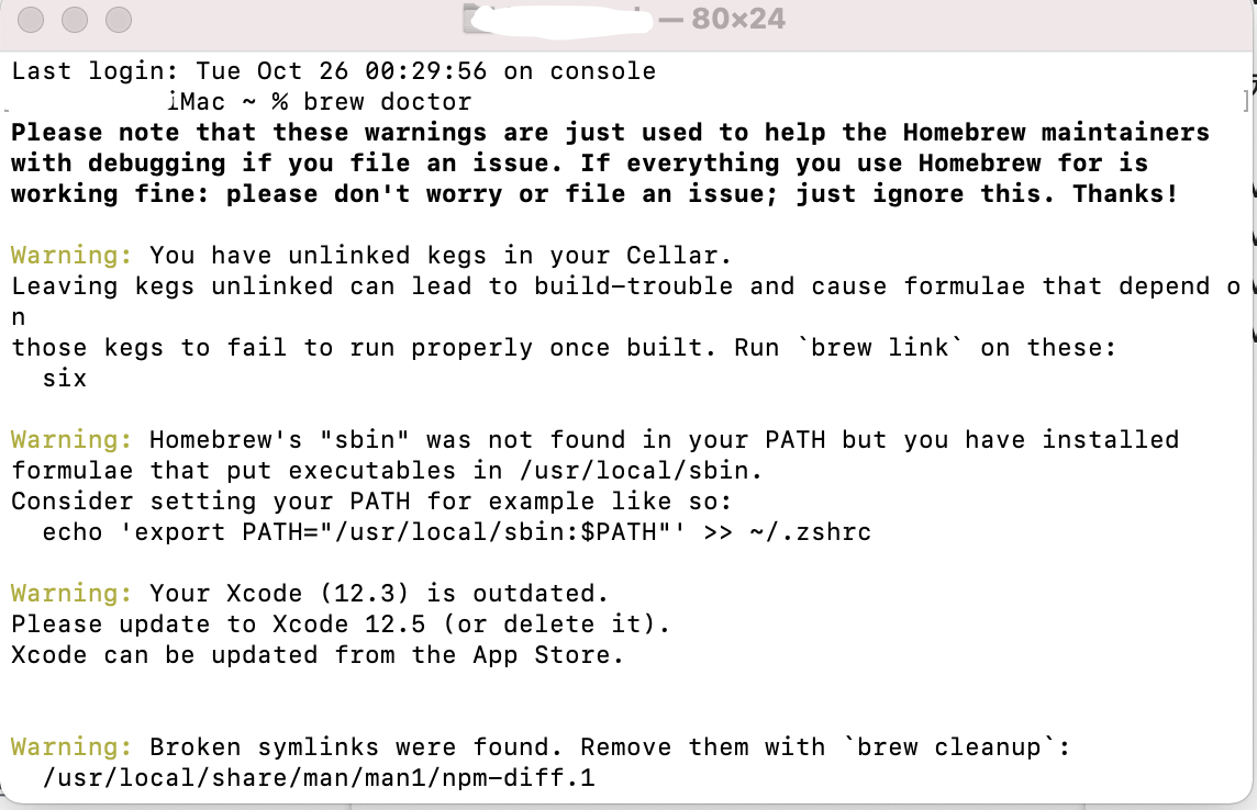 brew로 설치했던 패키지들에 대해 검사합니다.