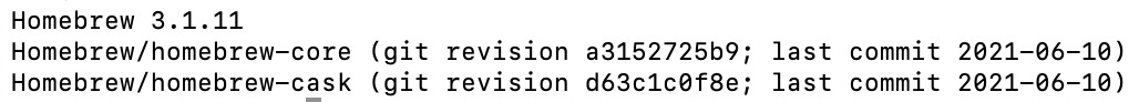 그러면 Homebrew가 설치되어있으니 버전 정보가 아래 캡처처럼 나옵니다.